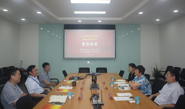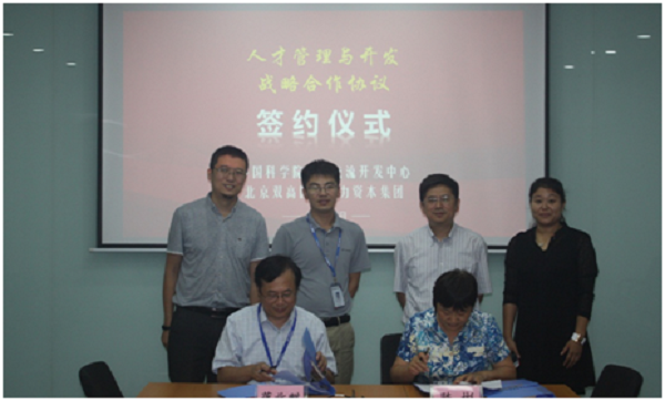2017年7月28日上午,人才中心与北京双高国际人力资本集团(以下简称“双高集团”)在双高集团总部正式签署《人才与开发战略合作协议》。人才中心副主任陈彬、中高级人才部主任汤忠杰,双高集团总裁蒋北麒、助理总裁郭忠良、人才与领导力测评中心副总经理张晋睿等出席签约仪式。