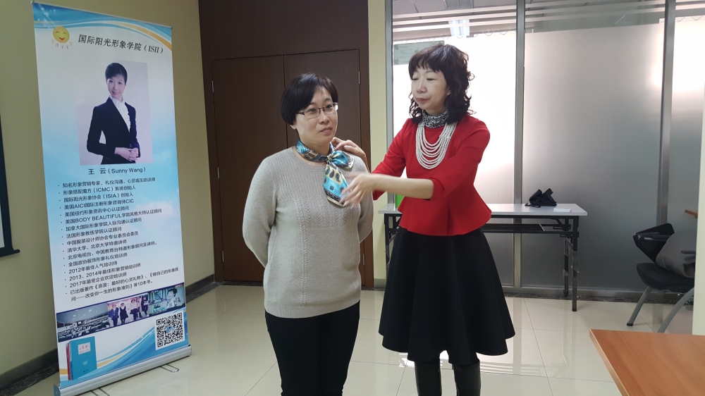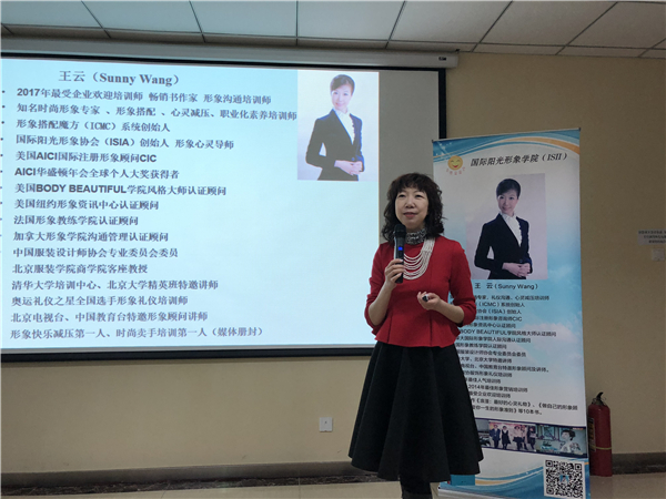 高级礼仪培训师、时尚形象营销专家王云老师从举止礼仪、仪容礼仪、服饰礼仪、问候礼仪、介绍礼仪、握手礼仪等方面进行了细致实用的介绍。王老师通过生动的讲解、形象的展示和积极的互动,让大家在轻松愉快的氛围中,掌握了不少职场服饰搭配、色彩搭配的原则、技巧和禁忌,以及女性最基本的站姿、坐姿、介绍和握手的职场礼仪。大家还在王老师的指导下亲自动手,饶有兴致地学起丝巾的系法来,现场欢声笑语,气氛热烈。精彩纷呈的讲座让大家聚精会神,兴致高涨,会后纷纷感叹受益匪浅、意犹未尽。
