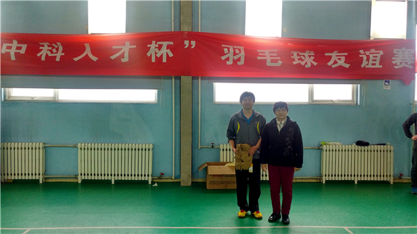 本届羽毛球比赛经过了半天的激烈角逐,圆满落下帷幕。财务管理部高鹏、综合管理部穆铭分获男单冠亚军;人才招聘部赵丽、综合管理部李姗姗分获女单冠亚军;穆铭、高悦和高鹏、杨国蕊分获混双冠亚军。中心副主任陈彬、党委副书记张庆发为获奖选手颁发了奖品,并集体合影留念。