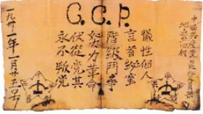 江西永新县农民贺页朵在1931年1月25日秘密加入中国共产党时的入党宣誓