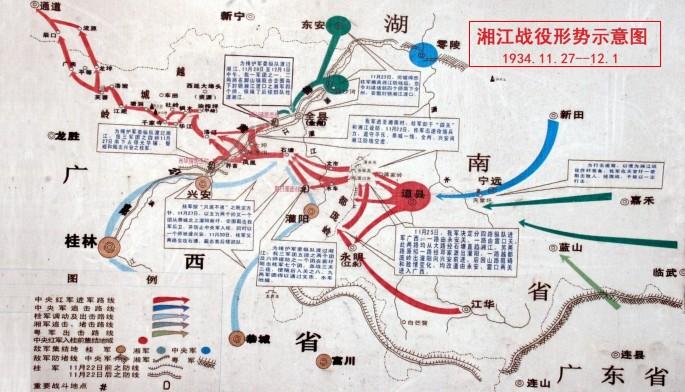 1934年11月27日至12月1日,中央红军在湘江上游广西境内的兴安县、全州县、灌阳县,与国民党军苦战五昼夜,最终从全州、兴安之间强渡湘江,突破了国民党军的第四道封锁线,粉碎了蒋介石围歼中央红军于湘江以东的企图。但是,中央红军也为此付出了极为惨重的代价。部队指战员和中央机关人员由长征出发时的8万多人锐减至3万余人。湘江战役是中央红军突围以来最壮烈、最关键的一战,也是关系中央红军生死存亡的一战。