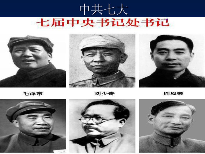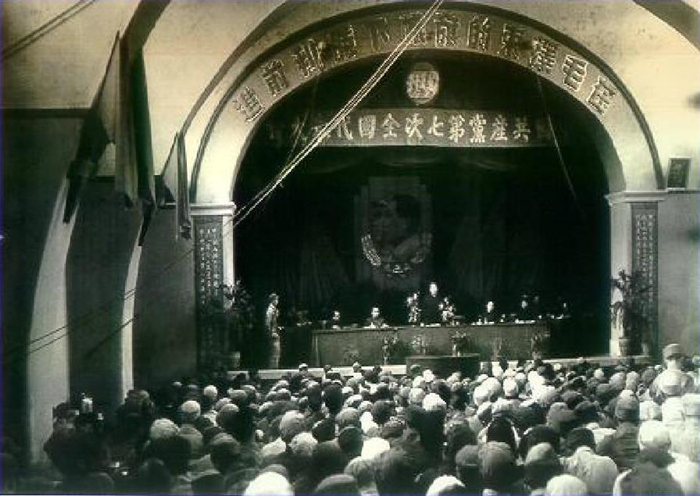 中国共产党第七次全国代表大会于1945年4月23日在延安杨家岭中央大礼堂召开。出席大会的正式代表547人,候补代表208人,代表着全国121万名党员。大会制定了新民主主义国家在政治、经济、文化方面的纲领;通过了新的党章,确定了以马克思列宁主义与中国革命实践相统一的毛泽东思想作为全党一切工作的指针;选举毛泽东为中央委员会主席、中央政治局主席、中央书记处主席、中央军事委员会主席。