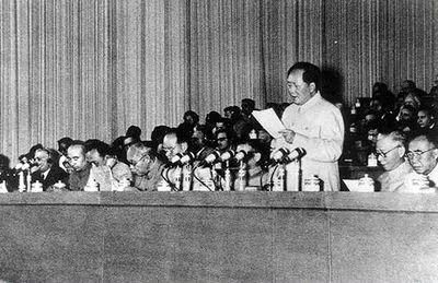 1956年9月15日至27日,中国共产党第八次全国代表大会在北京举行。毛泽东致开幕词,刘少奇作政治报告,周恩来作关于发展国民经济的第二个五年计划的建议的报告,邓小平作关于修改党章的报告。