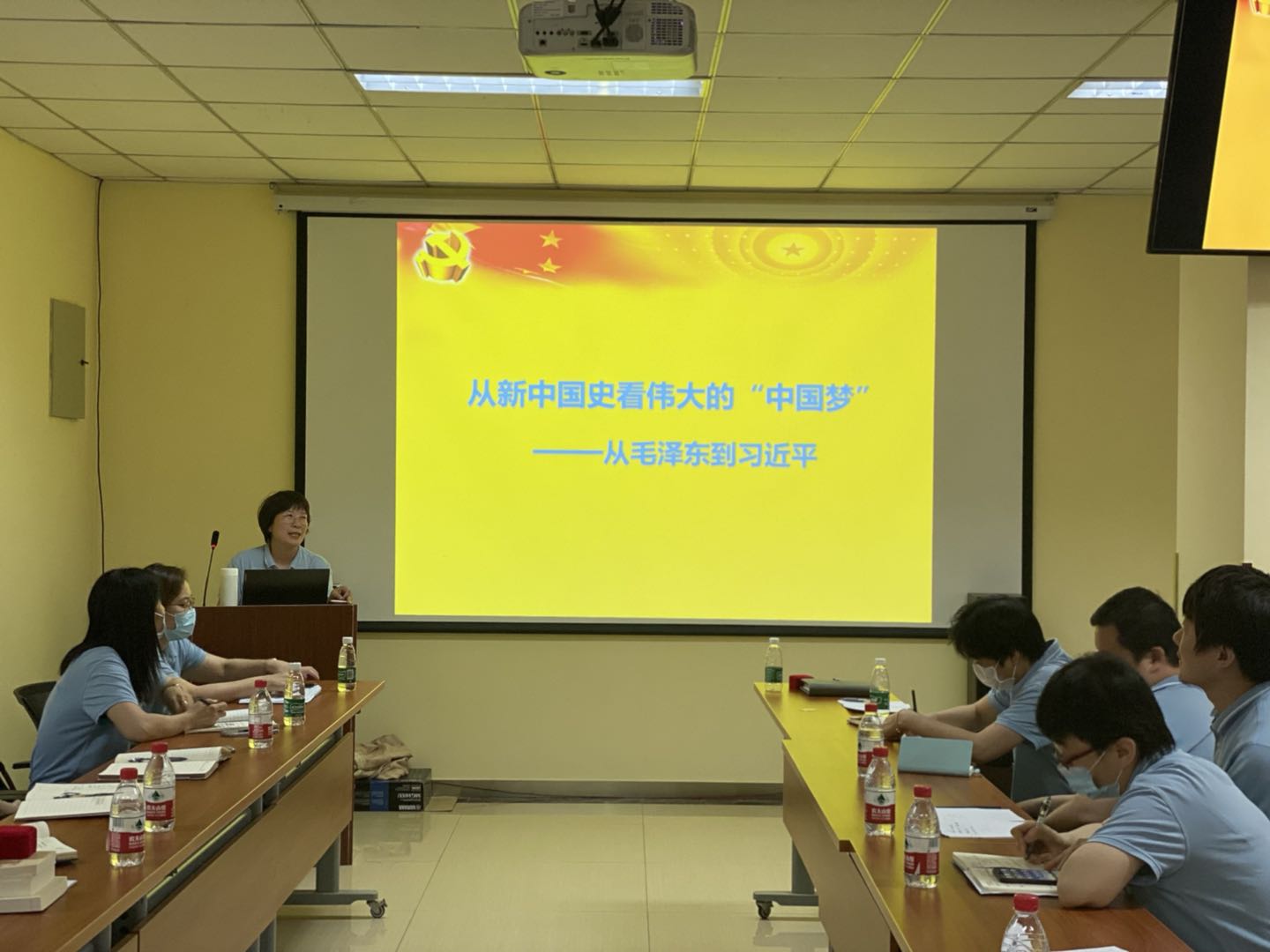 随后,党委副书记、人才中心支部书记范秀芳以“从新中国史看伟大的中国梦”为题,为支部党员上了一堂党史专题党课。她以“新中国史”为基本脉络,回顾从毛泽东到习近平的五代国家领导人,带领全国人民从一穷二白到伟大复兴的追梦史和取得的伟大成就,系统阐释了中国共产党不忘初心、牢记使命,坚持为中华民族谋复兴,为中国人民谋幸福。