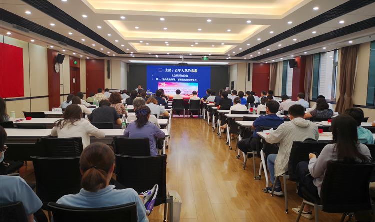 会议还专门邀请了中国人民大学中共党史党建研究院耿化敏副院长作《从初心使命把握百年大党的要诀——中国共产党的历程与经验》专题党课。耿院长从观史、察今、去路三个方面,系统总结了中国共产党百年探索成就与经验,精辟阐述了中国共产党以初心使命为本源、推进两大历史任务、形成三维一体结构、历经四大历史阶段、由五“代”共产党人和中国人民接续奋斗、共同创造的百年伟业。