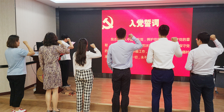 会上,陈彬副书记还为“我的入党故事”征文获奖者颁发奖品、证书,8名新党员也上台领取了党章和党徽,并与全体参会党员一起在鲜红的党旗下宣誓,许下庄严承诺。