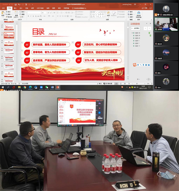 根据上级通知要求,结合党委党史学习教育安排,11月23日下午,国科量子党支部开展了“传承弘扬科学家精神,引领企业创新发展”主题党日活动。活动采用线上线下相结合的方式进行,支部9名党员全部参加了活动。