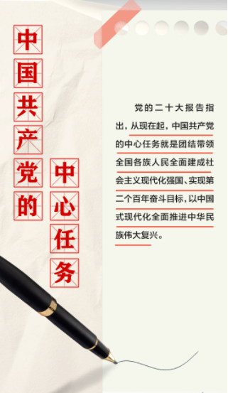 党的中心任务:中国共产党的中心任务就是团结带领全国各族人民全面建成社会主义现代化强国、实现第二个百年奋斗目标,以中国式现代化全面推进中华民族伟大复兴。