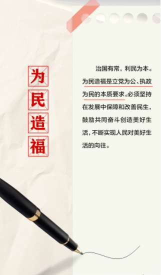 为民造福:人民就是江山,江山就是人民,共产党打江山、守江山,守得就是人民的心。