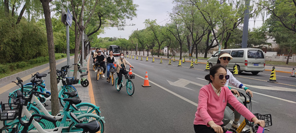 随后,大家骑着共享单车从车站旧址出发一路向西,一路上微风和煦、花香怡人,大家怀着激动的心情,洋溢着青春的笑容,骑着车三两相伴,在欢声笑语中不知不觉就已抵达颐和园。