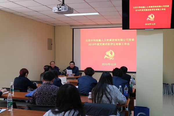 12月23日下午,中科创嘉公司党委召开2016年度现场党建述职评议考核工作会,会议由党委副书记张庆发主持。中科创嘉公司党委、纪委委员,人才中心党总支委员及部分党支部书记参加会议。会议内容共四项: