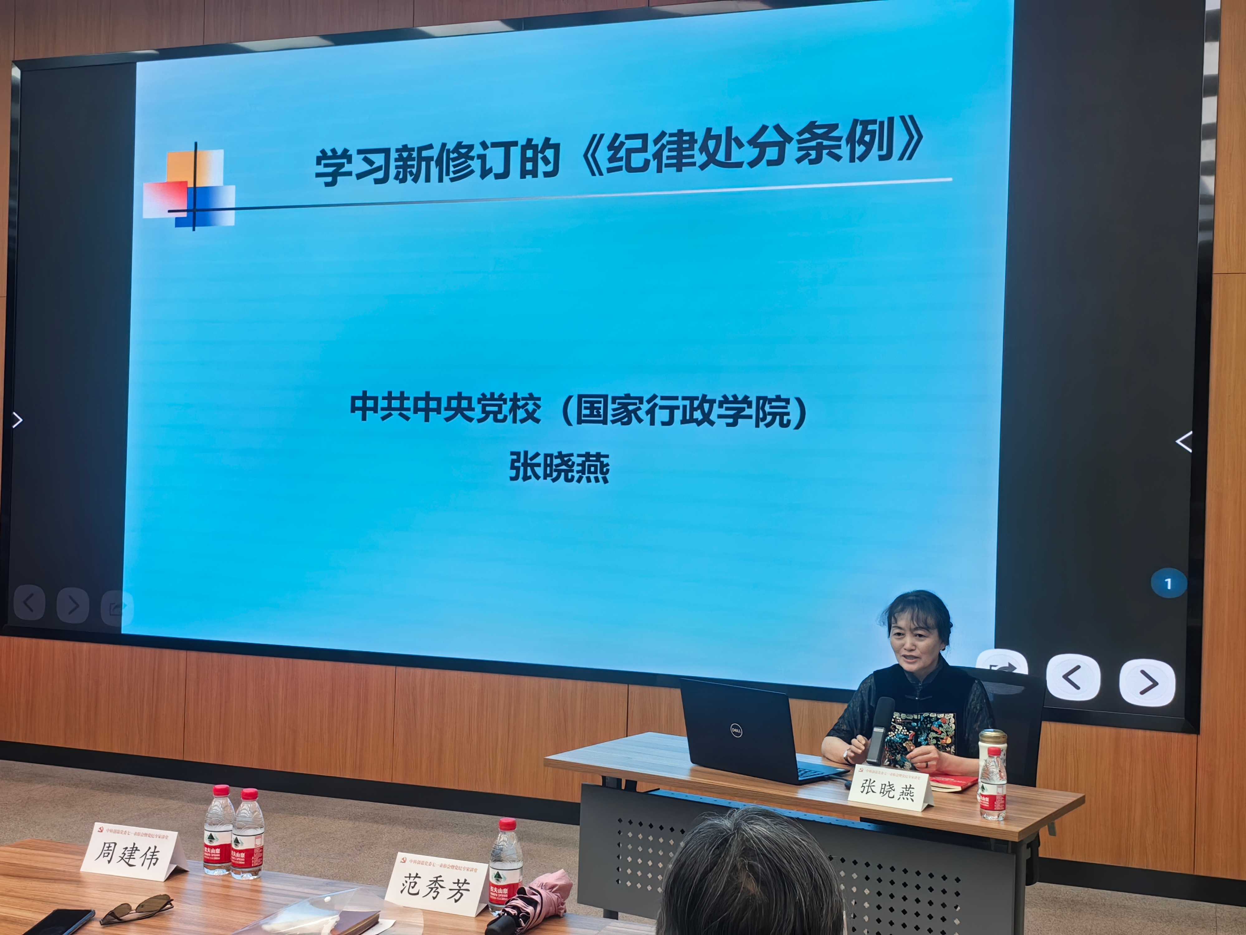 表彰环节结束后,中央党校张晓燕教授就新修订的《中国共产党纪律处分条例》为大家带来一场专题讲座。她全面深入地解读了《条例》修订的背景、内容和主要特点,并重点围绕易发高发的违规违纪案例进行了深入细致的剖析,教育引导广大党员强化纪律意识,筑牢思想防线,做到学纪、知纪、明纪、守纪。