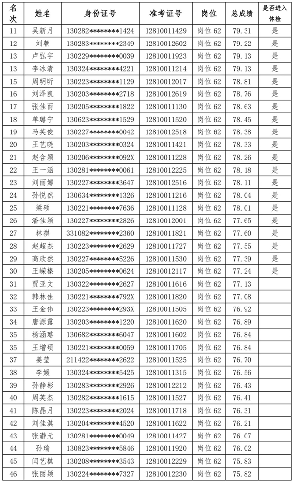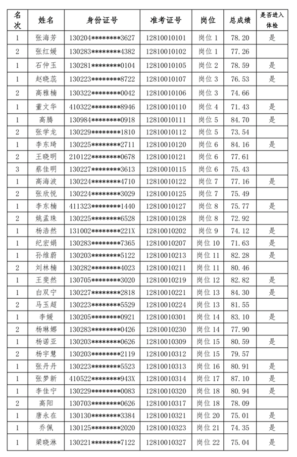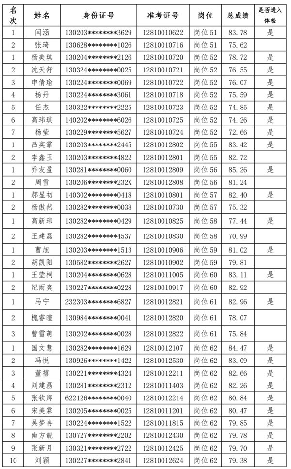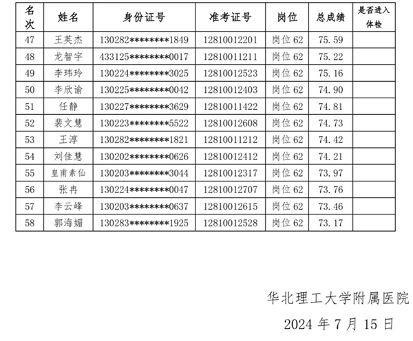 华北理工大学附属医院2024年第二批公开招聘工作人员考试工作已经结束,现将总成绩及是否进入体检予以公示。