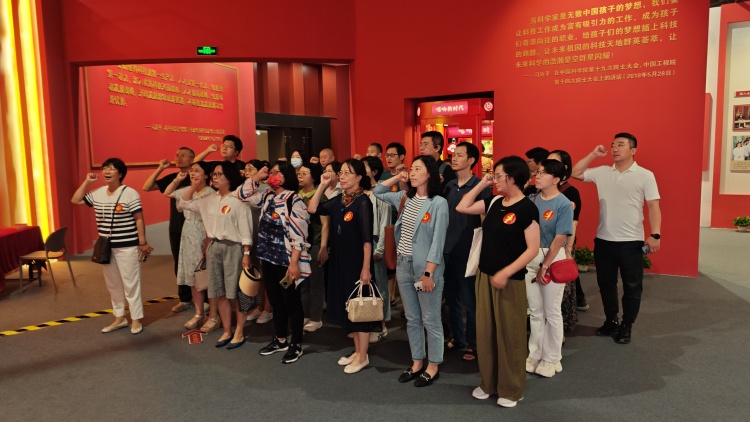 此外,党员们还参观了《归来——20世纪50年代留美归国科学家专题展》等多个专题展览。这些展览从不同角度、不同侧面展现了科学家们的风采和精神风貌,让党员们对科学家精神有了更加全面、深入的理解。最后,大家在范秀芳书记的带领下重温了入党誓词。