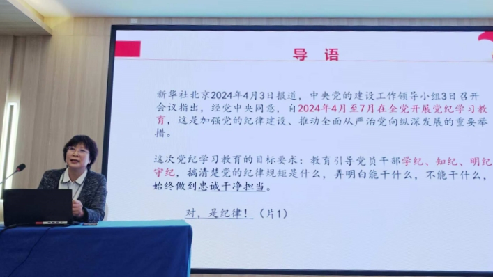 党委副书记、纪委书记范秀芳作了题为《深化党纪学习教育,锲而不舍落实中央八项规定精神》的党风廉政专题党课。她以学习贯彻《中国共产党纪律处分条例》为切入点,列举了近年来相关的违纪违法案例,教育引导全体党员严格遵守“六大纪律”,全面落实中央八项规定精神,锲而不舍整治“四风”,巩固扩展党纪学习教育成果,确保不发生问题。