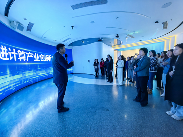 交流团近40人,由联合会专家委员会常务副主任陈彬、秘书长范秀芳带队。上午,交流团一行首先来到海光公司,公司副总裁王颖、人力资源总监余海栗热情接待了大家。在国家先进计算产业创新中心展厅,大家详细了解了海光从初创至今的发展历程、在高端计算芯片领域产品创新、技术研发及市场拓展等方面的卓越表现,共同见证了海光成立10周年来为我国信息产业的发展做出的突出贡献。