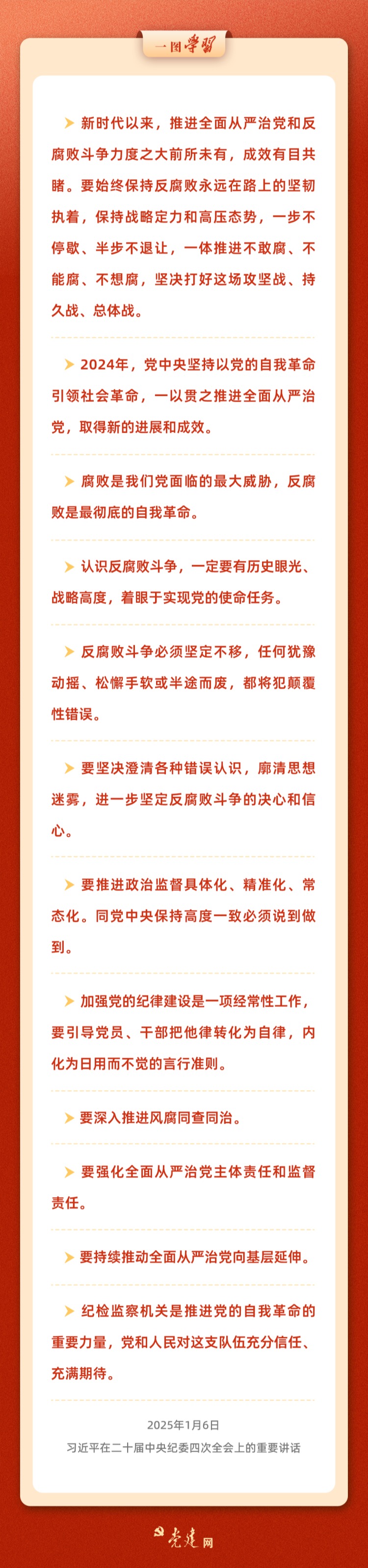 1月6日,习近平总书记在二十届中央纪委四次全会上发表重要讲话,强调坚持用改革精神和严的标准管党治党,坚决打好反腐败斗争攻坚战持久战总体战。总书记的重要讲话高瞻远瞩、思想深邃、直面问题、振聋发聩,为深入推进全面从严治党和反腐败斗争提供了重要遵循。小编为流动党员整理了总书记讲话的要点,供您学习。