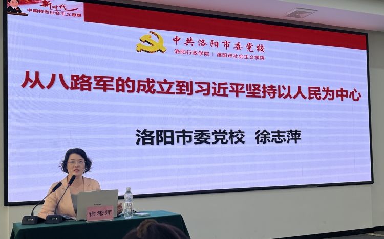 培训班上,洛阳市委党校管理教研部主任徐志萍教授作了题为《从八路军的成立到习近平坚持以人民为中心》的专题讲座。她从八路军成立的抗战大背景,到洛阳办事处的筹备及运行,再到习近平的人民情怀和执政理念的发展历程。以生动翔实的历史故事和具体事例,从理论高度、历史深度、情感温度和现实广度等多维度、宽视野,深入浅出地阐明了中国共产党全心全意为人民服务的宗旨和使命一脉相承、初心不改,作为世界第一大党长期执政的根本底气和力量源泉。