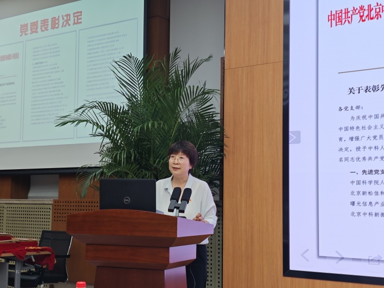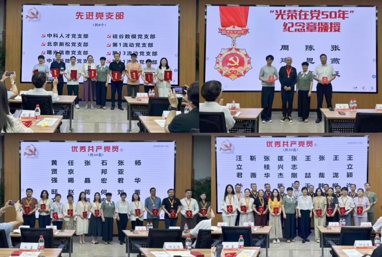 会上,党委副书记、纪委书记范秀芳宣读表彰决定,中科人才等8个党支部的书记、张亚君等30名优秀共产党员依次上台,从党委书记、总经理陈彬手中接过奖杯奖牌和证书奖励金。陈彬书记勉励他(她)们要珍惜荣誉、再接再厉,继续在不同领域、不同单位、不同岗位上发挥好先锋模范作用,为实现科技高水平自立自强和中国式现代化贡献党员力量。陈彬还为满50年党龄的老党员张燕辰同志颁发并佩戴“光荣在党50年”纪念章,其他2名老同志因身体原因未能到场,由同事或亲友代领。