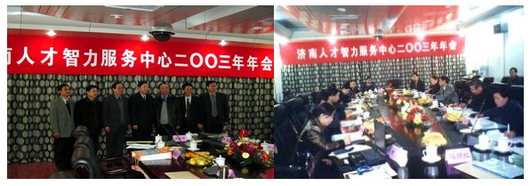 2003年3月18日至19日,在中国科学院人才交流开发中心周建伟主任的率领下,中心副主任黄炜、三里河分部主任张庆发、中高级人才部主任赵姝、经济协作部主管姜斌一行五人参加了济南人才智力服务中心2003年会。会议首先总结并讨论通过了2003年度济南人才智力服务中心的工作计划,随后改选了新的领导班子,周建伟继续担任主任并增加了组织部、人事局、科干局、信息产业局的领导参加智力服务中心的工作。年会结束后,中国科学院人才交流开发中心的领导与济南市人才交流服务中心的领导举行了会谈,双方随后签署了《战略合作协议》以加强双方的合作。