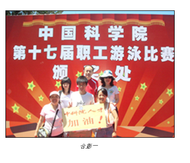 7月12日,我中心4名员工参加了由中科院工会、京区体协联合举办的中国科学院京区第17届职工游泳比赛,本次比赛以“喜迎奥运、科学健身、营造和谐、促进创新“为主题。运动场上,本着“友谊第一,比赛第二”的精神,我中心员工奋力拼搏,尽量发挥最大潜能,蓝色的水池中,不时激起层层浪花。啦啦队则不停地助威呐喊,并将连夜制作的“中科院人才加油”的牌子高举起来,一旁的科研院所单位见状也纷纷为我中心运动员加油……另外,我中心也向中科院工会积极投稿,三篇稿件在运动场上均被采纳,并在赛场上得到宣传。