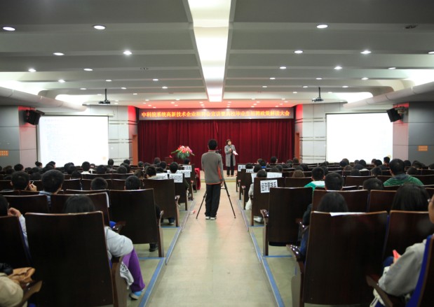 10月22日在北京邮电大学世纪学院415报告厅举办“中科杯”优秀就业服务志愿者表彰大会,并进行中科院系统企业招聘会及招聘政策宣讲活动?;岢∽扌橄弦瞪辉静位?,各系(院)主任助理、毕业班辅导员也悉数到场。中科院人才交流开发中心陈彬副主任、人才招聘部主任赵丽亲临现场,陈彬副主任为毕业班同学详细介绍了近期中科院高新技术企业系列招聘活动的安排,招聘企业需求及职位描述,并讲解了近年中科院系统院所及企业的招聘政策。陈主任特别强调,本年度中科院人才交流开发中心将集中两个时段举办招聘会,一是10月28日-11月1日进校园招聘,二是11月16-17日在全国农业展览馆举办的《中国科学院创新2020招聘活动》。希望同学们认真准备、积极参与、踊跃应聘,克服为难情绪,展示最优秀的自我。最后,陈彬副主任还要求同学们理智处理初入职场时的档案管理等相关问题,为今后自己的职业发展打下良好的基础。