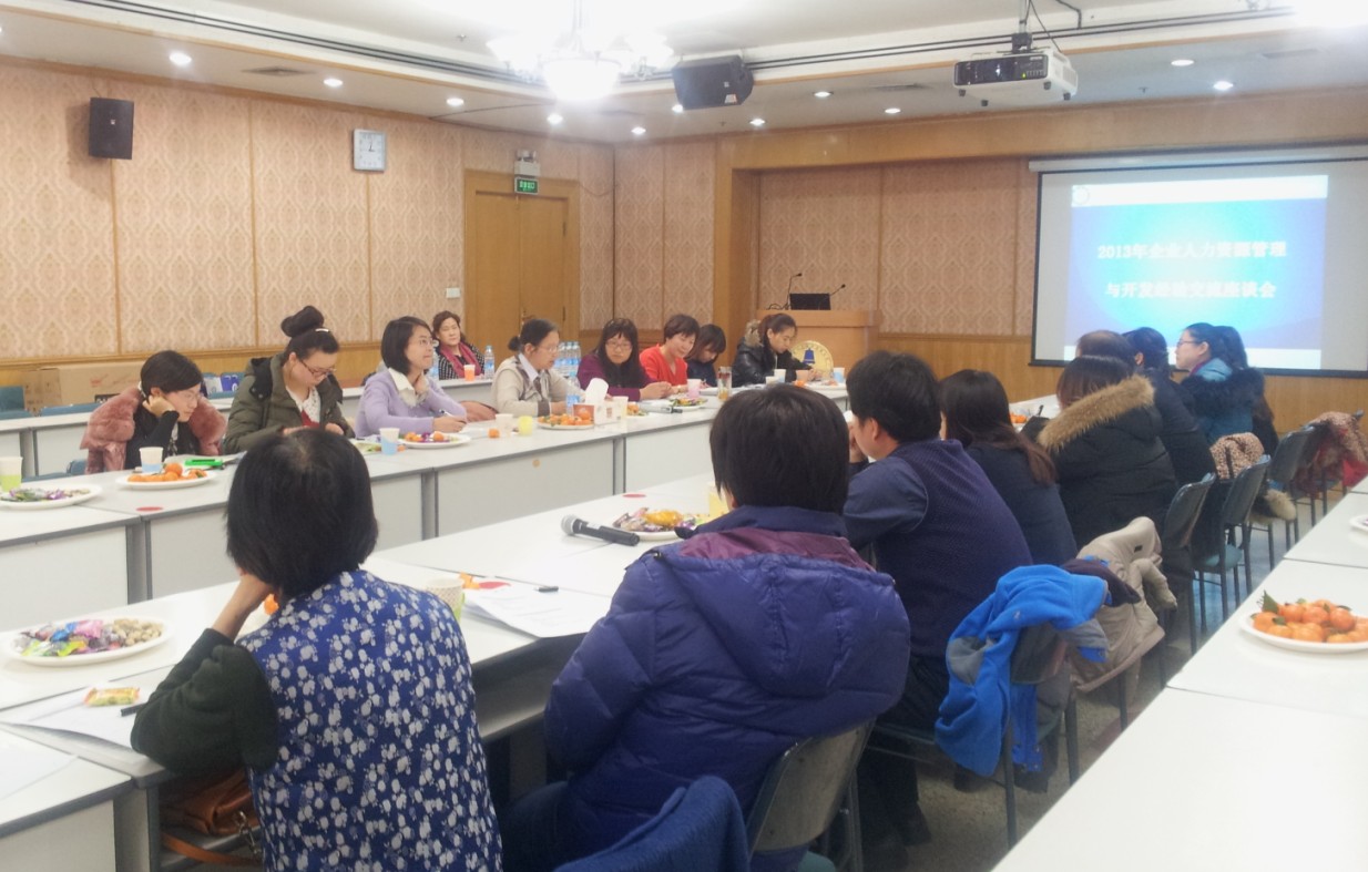 为感谢客户长期以来的支持,同时为了更好地提供全方位优质服务, 12月23日下午,人才中心在中科院声学所DSP大楼四楼会议厅召开了“2013年企业人力资源管理与开发经验交流座谈会”,来自30家高新企业近40名人力资源部经理、人事主管参加了此次座谈会。座谈会由综合事务部主任范秀芳主持。