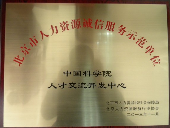 中科院人才中心继2012年被北京市人才服务机构等级评定委员会评为“4A人才服务机构”之后,近日被北京市人力资源与社会保障局和人才服务行业协会评为“北京市人力资源诚信服务示范单位”。