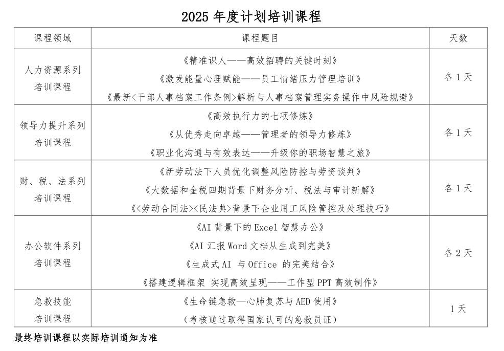 关于举办2025年《HR管理俱乐部》系列培训的通知