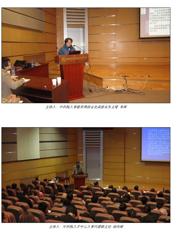 | 为使人事档案管理人员能准确地掌握人事档案管理政策依据、工作流程、方法和技能,提高人力资源管理部门领导和档案人员的业务能力,2012年4月26日,中科院人才中心在化学所礼堂举办了《档案管理实务与技巧》培训班,培训班由中科院人事教育局综合处高级业务主管李萍、人才中心人事代理部主任杨向峰担任主讲。本次培训有来自各院所、企事业单位人事档案管理人员共计70余人参加。 培训第一讲,李萍老师以“干部人事档案管理工作”为题,重点为学员讲解了干部人事档案材料收集归档的政策规定、《中国科学院干部人事档案材料分类标准》中十类材料的具体要求及收集方法,并结合刚刚结束的“中国科学院干部人事档案审核工作”的验收标准以及在验收中出现的诸如“三龄一历”等突出问题,为大家传授了在日常人事档案接收、管理中的工作标准和解决问题的办法。李萍老师在讲述过程中耐心解答大家提出的实际问题,对今后开展工作具有非常重要的指导意义。李萍老师最后表示“档案管理是人事工作的基础,所有人事档案管理工作人员都应抱有'做一行爱一行,做一行专一行’的精神,为档案管理的规范化做出自己的贡献”。 培训第二讲,杨向峰老师以“单位委托人事代理档案管理实务”为题,重点讲述了人事代理工作中档案管理的重要性和存在的具体问题,各类人员档案调入的办理手续、档案中必要的材料、特殊情况的处理,档案调出的办理手续,人员退休的申报、办理,以及各类人员工龄的认定办法。杨向峰老师在讲解过程中列举了大量有代表性的实际案例,并回答了学员在工作中出现的各种问题以及一些历史遗留问题的处理办法。 通过一天的培训、答疑和讨论,学员们纷纷表示对人事档案管理在宏观、微观上都有了全面、详细的了解,对以后开展工作具有非常重要的指导作用,并希望中心能够更多的举办相关培训和业务交流活动,使大家在专注具体工作的同时,获得更多的知识和技能,以提高人事管理水平。 |