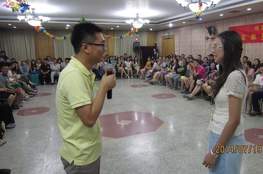 到场的青年男女们以十足的活力、饱满的热情和真诚的态度参与此次联谊。联谊活动分为游戏、表白、抽奖三个环节,中间穿插了单身男女对中意者的情感问答。通过开场后的游戏环节大家逐渐熟悉,现场气氛很快活跃起来,“微博大屏幕”实时上传着参与活动青年男女们的心情、感触、祝福等。活动中,不时有男嘉宾主动上场向心仪的女嘉宾表白,气氛紧张而又充满激情,现场大家不时出现掌声和喝彩声。最终有6对男女成功约会,开始了他们甜蜜的爱情之路。