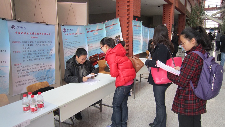 2013年4月20日,由中科院人才中心主办的“2013届高校毕业生校园双选会”在中国科学院大学教学楼一层成功举办。至此,“2013年春季校园双选会”系列活动画上了圆满句号。