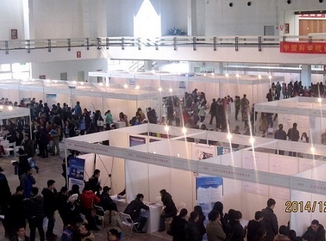 为满足院属单位对各类人才的招聘需求,整合院内招聘资源,院人才中心作为协办单位,于12月8日在中国国际展览中心老馆组织中科院研究所和企业参加了“2015年北京地区毕业研究生专场供需见面、双向选择招聘会暨中国科学院招聘专区”。此次招聘会共计700多家单位参加,其中中科院招聘专区单位50家,提供就业岗位1.5万余个,到场求职人员4万人次。专区展位特别得到了大连化学物理研究所、西安光学精密机械研究所、福建物质结构研究所等多家外地院所的大力支持。
