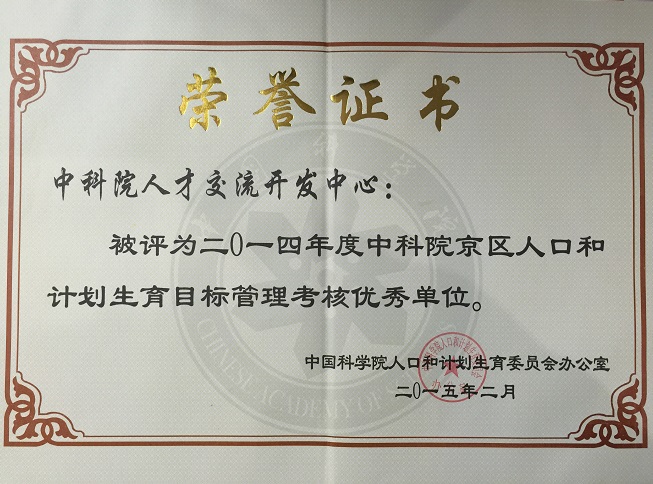 2014年是北京市实行“单独两孩”政策的第一年,中心的计划生育工作面临新的挑战。在上级单位的指导、帮助和中心领导的高度重视和领导下,计生工作在组织管理、政策学习、基础工作、宣传教育、优质服务、公益捐款和学习培训方面做了大量扎实有效的工作,为实现与中科院北京分院签订的《2014年度中国科学院京区人口和计划生育目标管理责任书》目标考核指标奠定了基础,并且在2014年度中科院北京分院计生工作考核评比中,获得“二〇一四年度中科院京区人口和计划生育目标管理考核优秀单位”和“二〇一四年度中科院京区人口和计划生育目标管理考核优秀计生工作者”的荣誉称号。